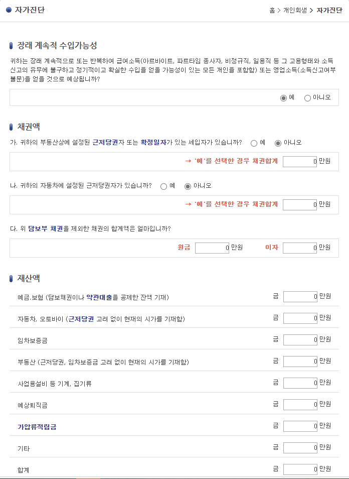 ③ 신청 사유: 채무 상환이 과중하여 정상적 상환이 어려운 상태.
