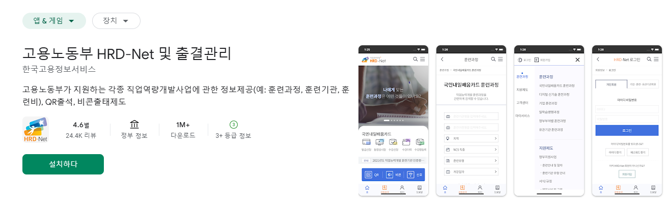 - 플레이스토어/앱스토어에서 'HRD-Net' 검색