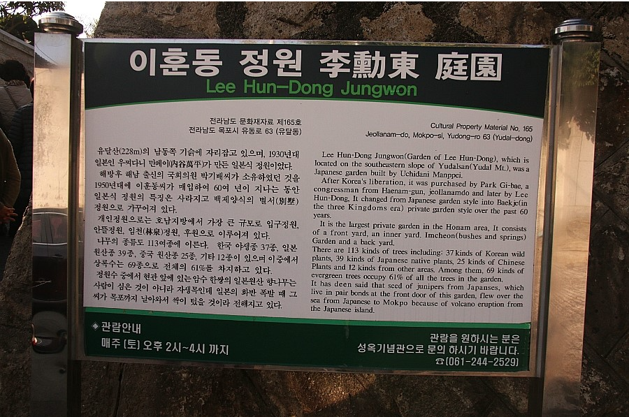 Lee Hun-Dong Jungwon (Garden of Lee Hun-Dong), which is located on the southeastern slope of Yudalsan (Yudal Mt.), was a Japanese garden built by Uchidani Manppei.