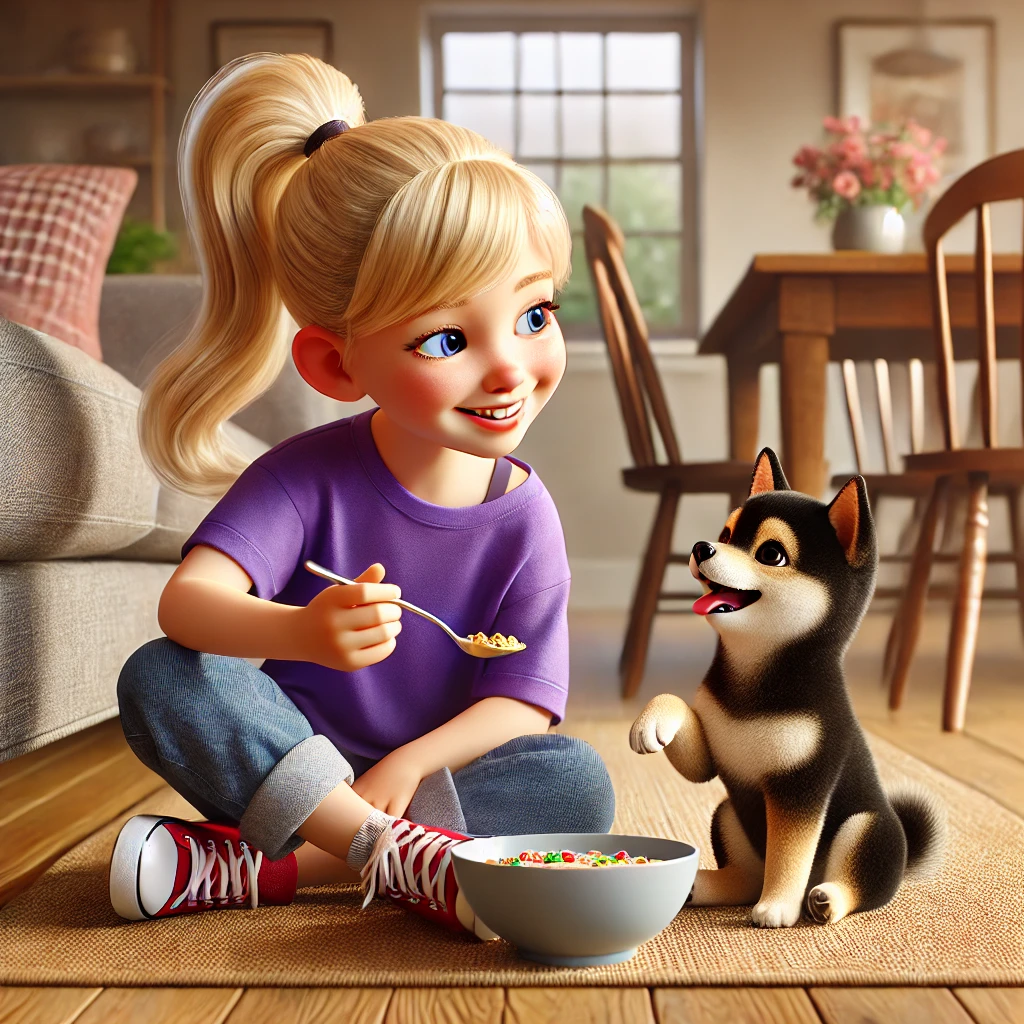 산책 후에 돌아오면, 웅이의 눈빛이 다시 한번 빛납니다. 바로 아침 식사 시간입니다!