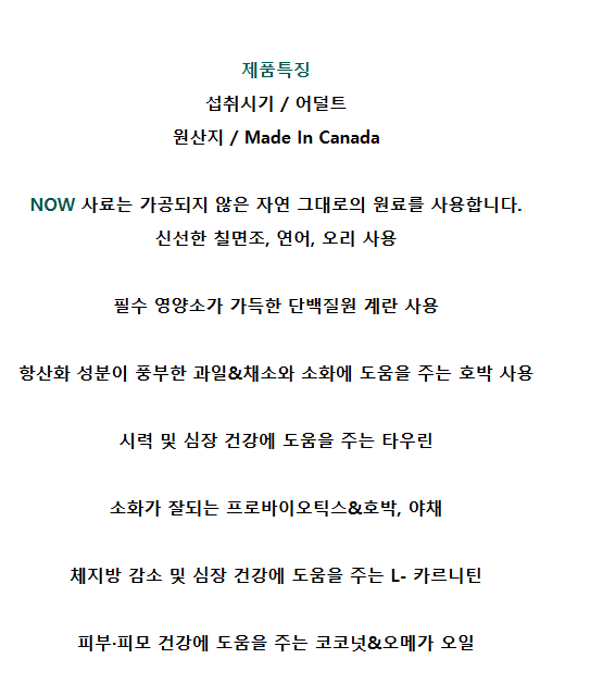 - 특징: 캐나다산 프리미엄 사료