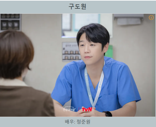 정준원은 4년 차 선배 전공의 구도원을 연기합니다. 신입 전공의들의 멘토이자 보호자 역할을 하며, 뛰어난 실력과 침착한 리더십으로 극의 안정감을 부여합니다. 때로는 무서운 선배이자, 때로는 따뜻한 위로를 건네는 형 같은 인물로 다층적인 매력을 가진 캐릭터입니다.