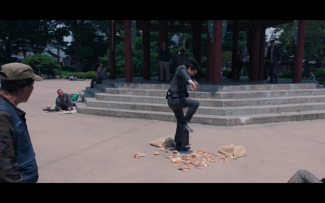 운이 좋아서 겨우 폐기처리를 면한 쓰레기(기훈을 바짝 보면서 비웃음 짓는다)