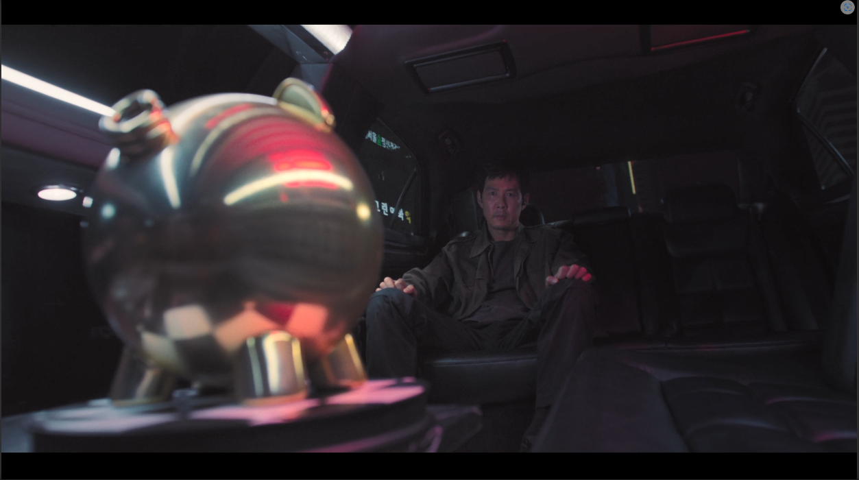 리무진 차 안에서 성기훈과 프론트 맨(조수석)의 대사