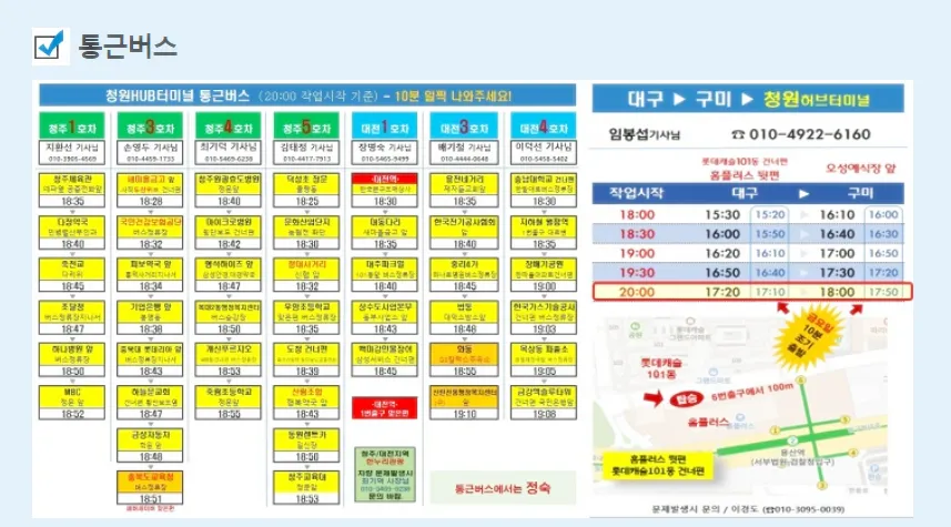 - 버스 노선표 확인 후 10분 전에 탑승 대기