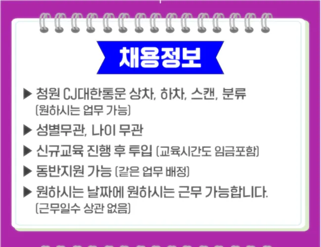 알바천국 및 알바몬에서 택배 상하차를 검색 후 청원 cj 대한통운을 찾습니다.