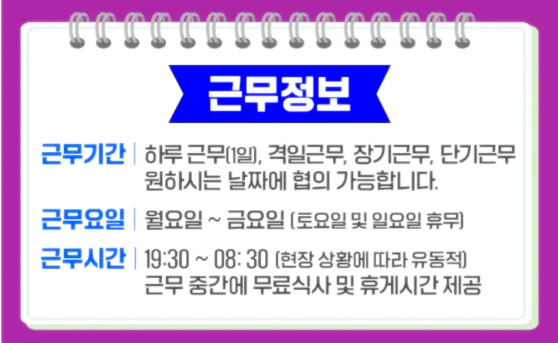 - 근무 시간 : 20:00 ~ 06:00