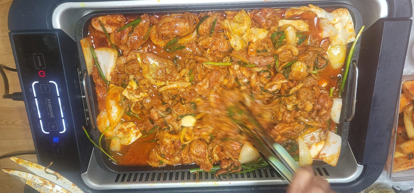 그래서 바로 오리 주물럭을 굽기 시작했는데요,