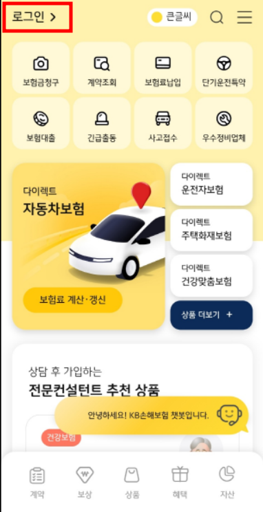 1.KB손해 보험 어플다운로드 후 접속