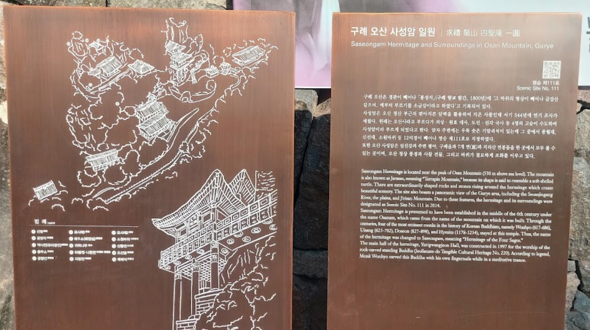 • 위치: 전라남도 구례군 문척면 죽마리 189, 사성암 내